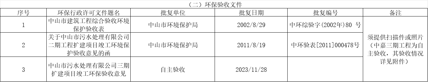 中山市污水處理有限公司環(huán)保驗(yàn)收資料