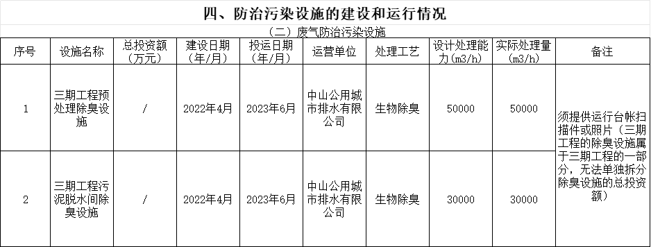 中山市污水處理有限公司2024年除臭系統(tǒng)運行臺賬