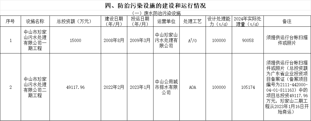中山市珍家山污水處理有限公司2024年運(yùn)行情況記錄表