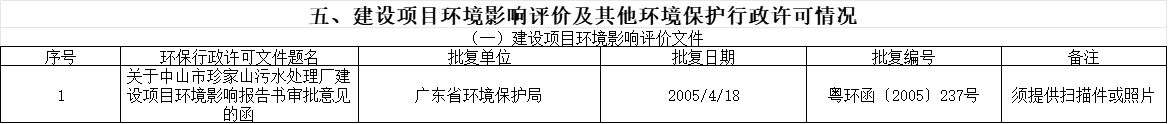 中山市珍家山污水處理有限公司環(huán)保驗(yàn)收資料