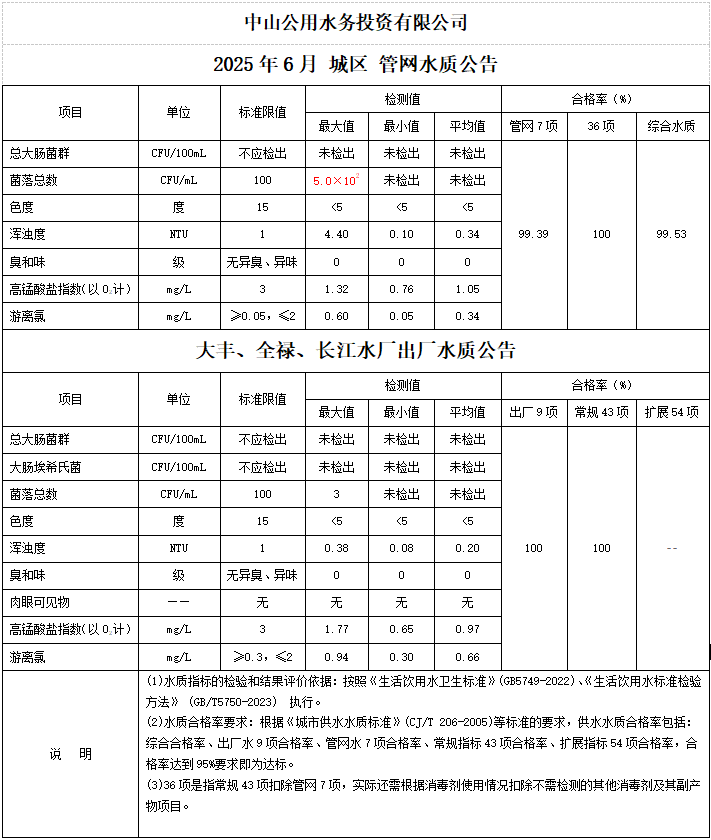 中山市城區(qū)水質(zhì)公告(2025.06.01-2025.06.30)