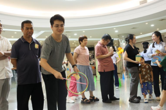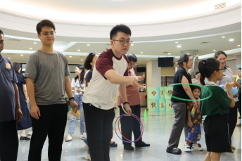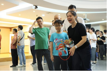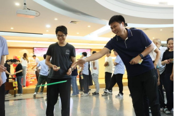 “看我的!”有人深吸一口氣,抬手一投,乒乓球穩(wěn)穩(wěn)落進(jìn)紙杯,引來(lái)陣陣掌聲;也有人偶爾失手,球擦著杯沿滑落,卻笑著擺擺手“看來(lái)手眼協(xié)調(diào)還得再練練,再來(lái)一次!”輕松的玩笑、彼此的鼓勵(lì),讓這個(gè)小小的游戲區(qū)變成了歡樂(lè)的聚集地,每個(gè)人臉上都掛著藏不住的笑意。