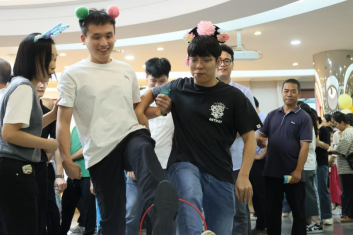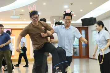 作為最考驗(yàn)?zāi)醯捻?xiàng)目,雙人組隊(duì)共套圓環(huán),一步一挪同步向前。有人步伐一致、快速?zèng)_線,引來(lái)陣陣贊嘆;有人偶爾“同手同腳”,逗得全場(chǎng)大笑。在一同步伐里,同事間的默契悄然升溫。