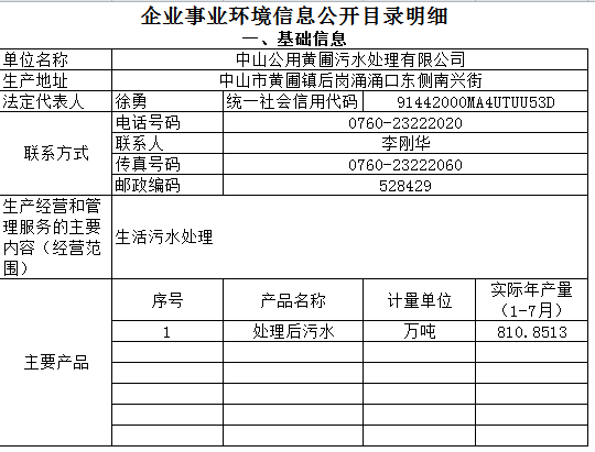 中山公用黃圃污水處理有限公司檢測報(bào)告