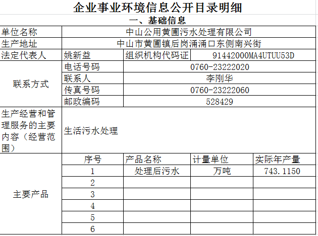 中山公用黃圃污水處理有限公司2022年上半年信息公開(kāi)